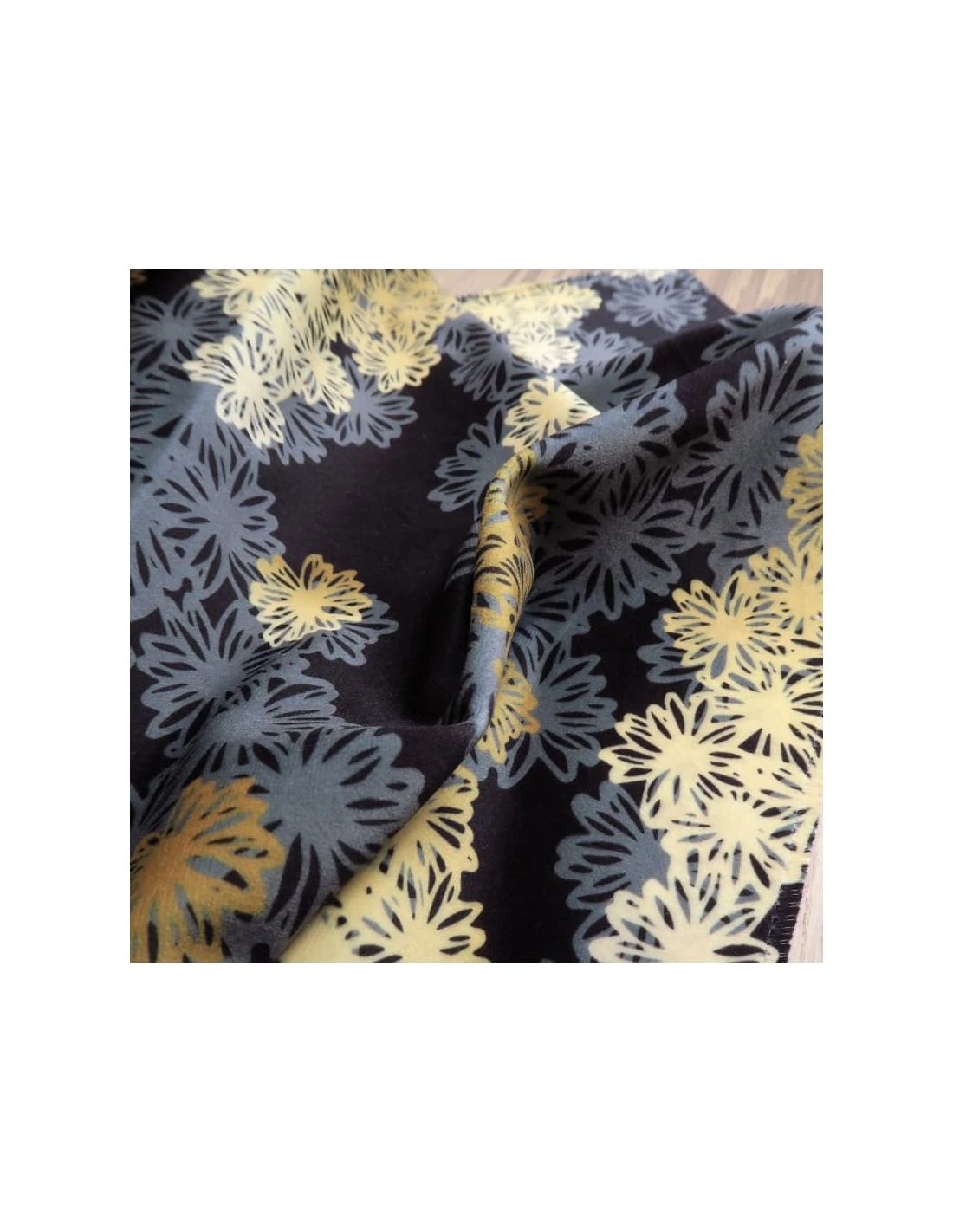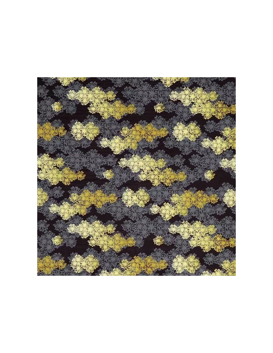 Tissu de velours noir et gris aux fleurs de petite taille alignées horizontalement, K3 design by Kenzo Takada